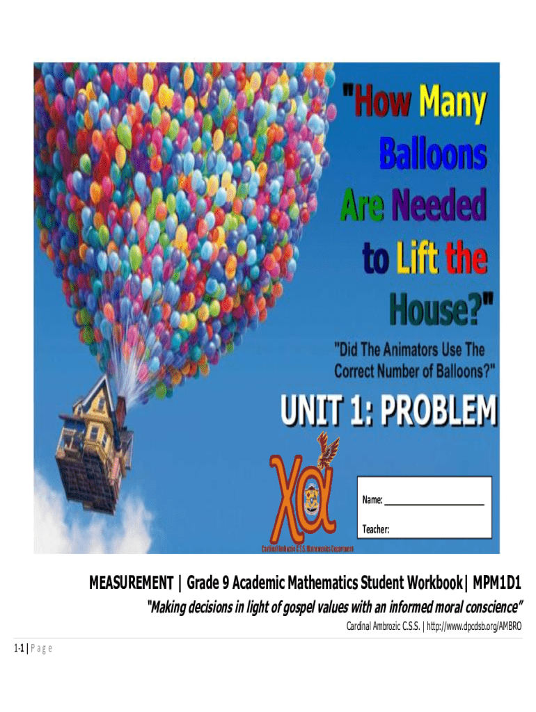 Teacher:MEASUREMENT | Grade 9 Academic Mathematics Student Workbook| MPM1D1