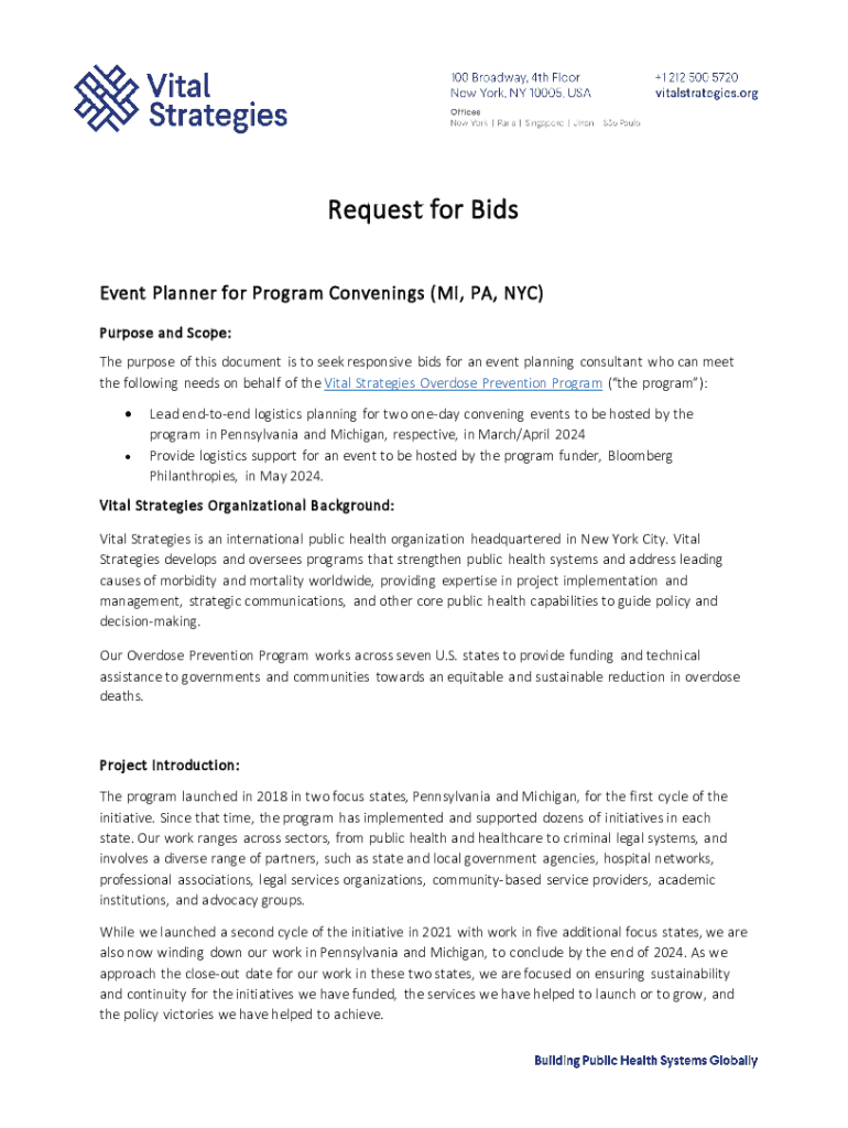 The purpose of this document is to seek responsive bids for an event planning consultant who can meet