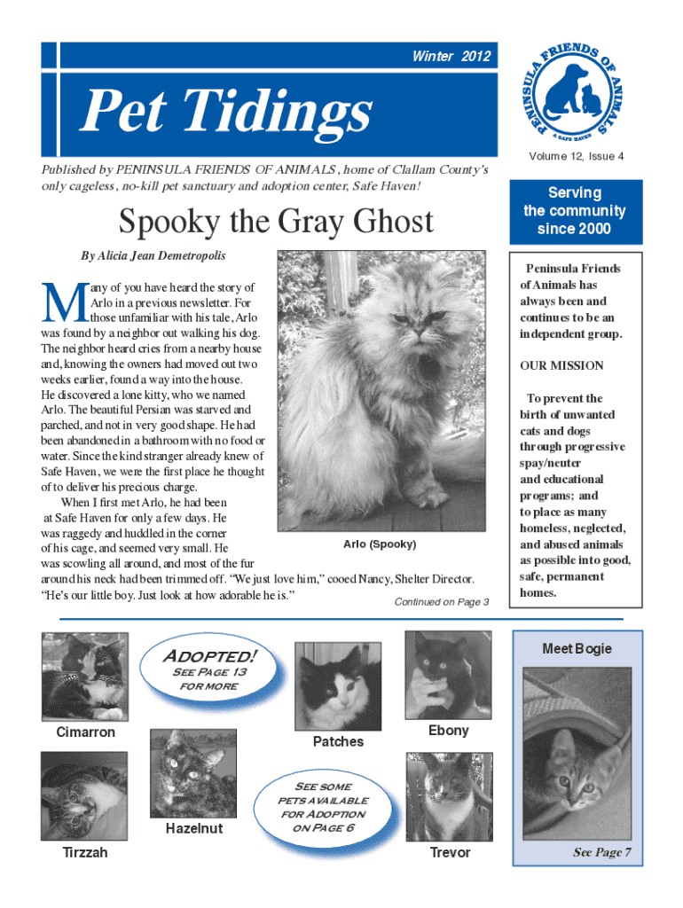 Pet TidingsWinter 2012Published by PENINSULA FRIENDS OF ANIMALS, home of Callao Counties
