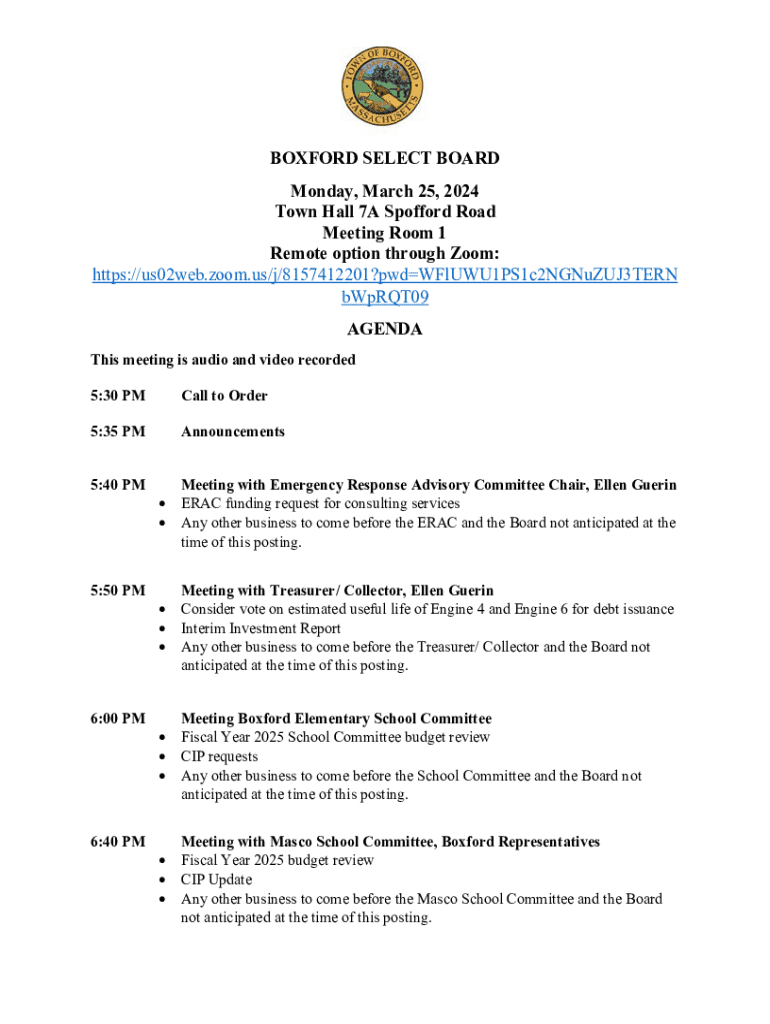 Get the free BOXFORD SELECT BOARD Monday, March 25, 2024 Town Hall 7A ...