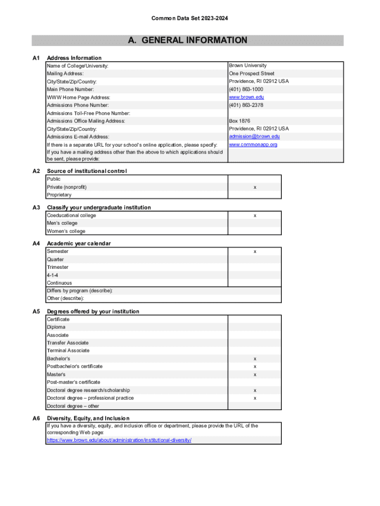 Get the free Brown University Common Data Set - A1 Address ...