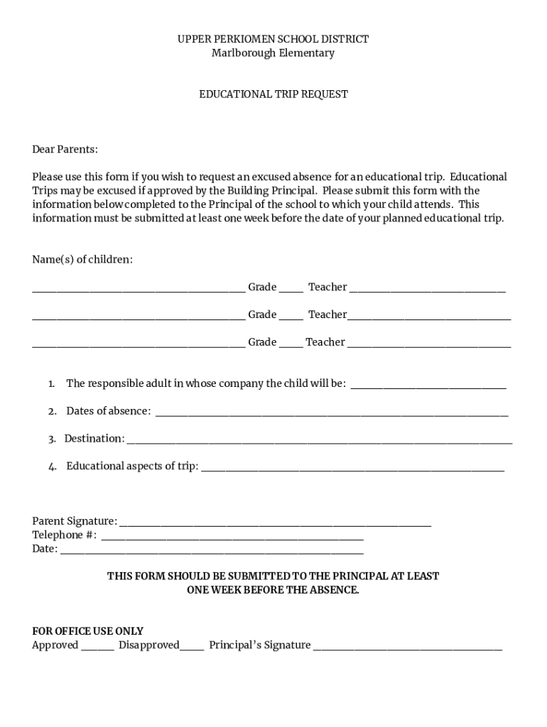 Please use this form if you wish to request an excused absence for an educational trip. Educational