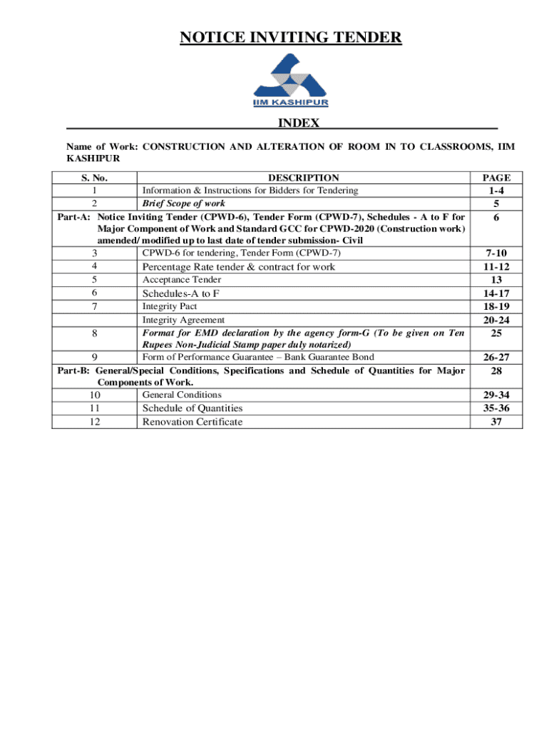 Name of Work: CONSTRUCTION AND ALTERATION OF ROOM IN TO CLASSROOMS, IIM