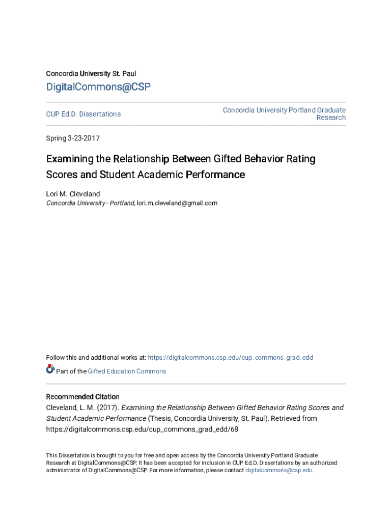 Get the free Examining the Relationship Between Gifted Behavior Rating Scores and Student Academi...