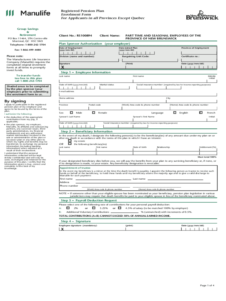 Get the free Registered Pension Plan Enrolment Form for Applicants in all ...
