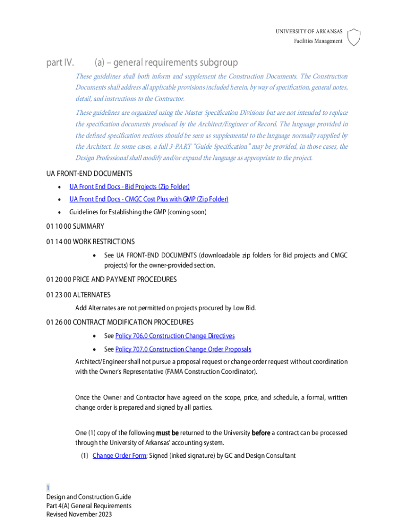UNIVERSITY OF ARKANSAS Facilities Managementpart IV.(a) general requirements subgroup These guidelines shall both inform and supplement the Construction Documents. The Construction Documents shall