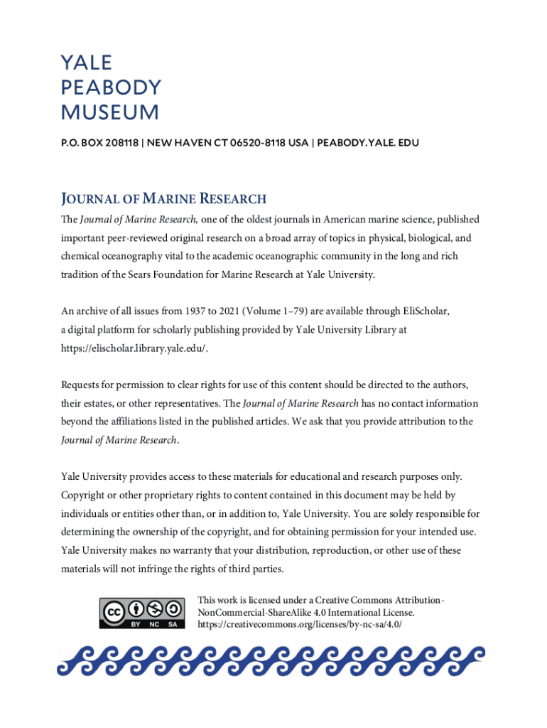 P.O. BOX 208118 | NEW HAVEN CT 065208118 USA | PEABODY.YALE. JOURNAL OF MARINE RESEARCH