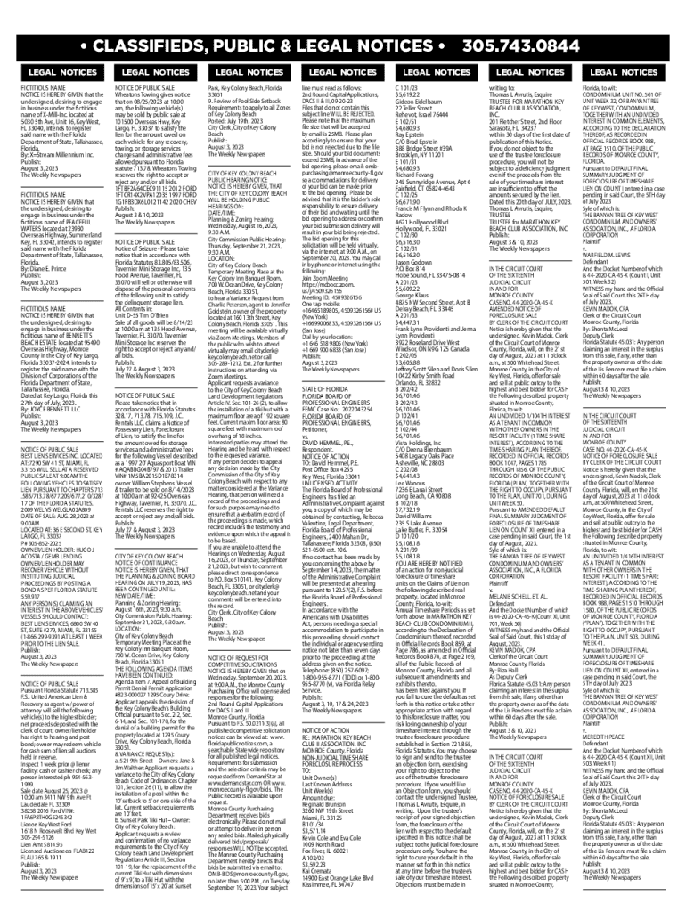 CLASSIFIEDS, PUBLIC & LEGAL NOTICES 305.743.0844LEGAL NOTICESLEGAL NOTICESLEGAL NOTICESLEGAL NOTICESLEGAL NOTICESLEGAL NOTICESLEGAL NOTICESFICTITIOUS NAME