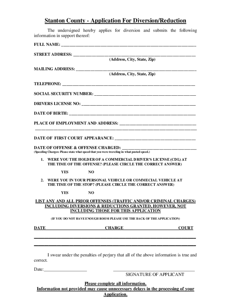 Stanton County Application For Diversion/Reduction