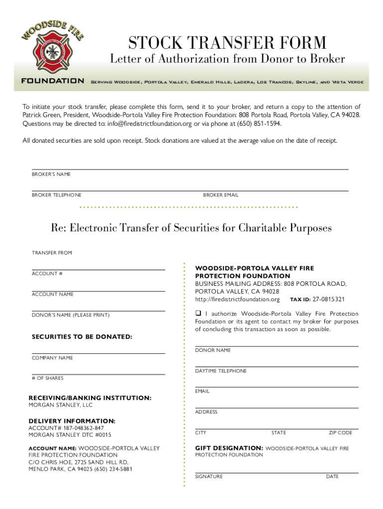 Serving Woodside, Tortola Valley, Emerald Hills, Madera, Los Trances, Skyline, and Vista Verde initiate your stock transfer, please complete