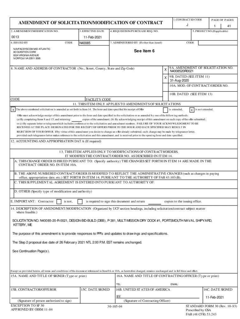 How to fill out n40085-20-r-0021 design-bid-build dbb p-381