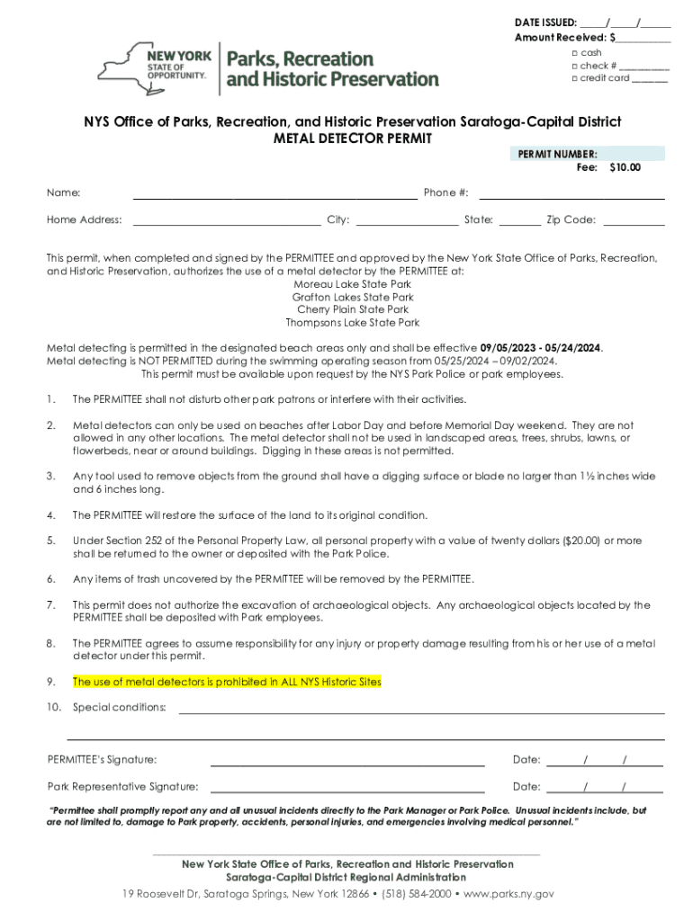 METAL DETECTOR PERMIT NUMBER: