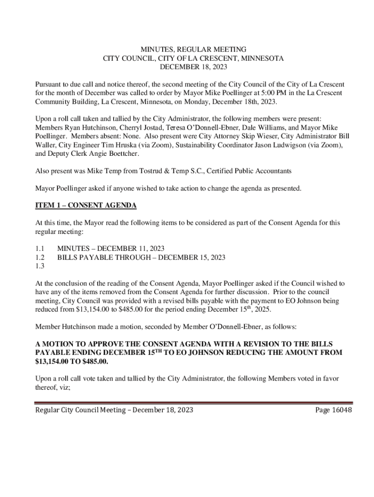 CITY COUNCIL, CITY OF LA CRESCENT, MINNESOTA