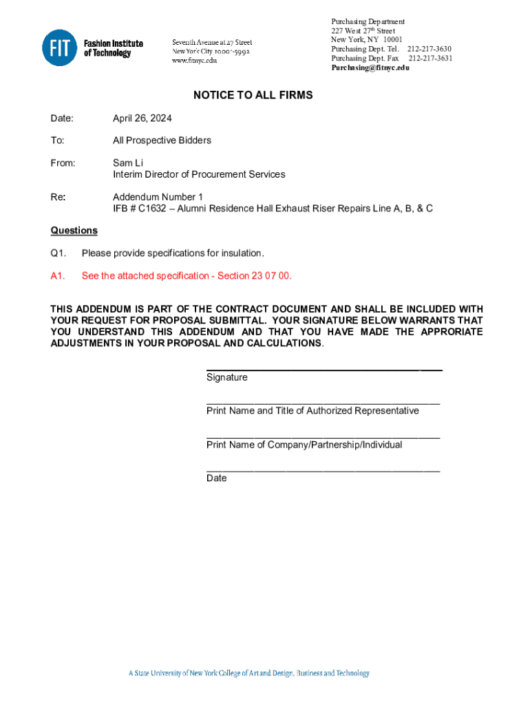 Purchasing@fitnyc.eduNOTICE TO ALL FIRMS