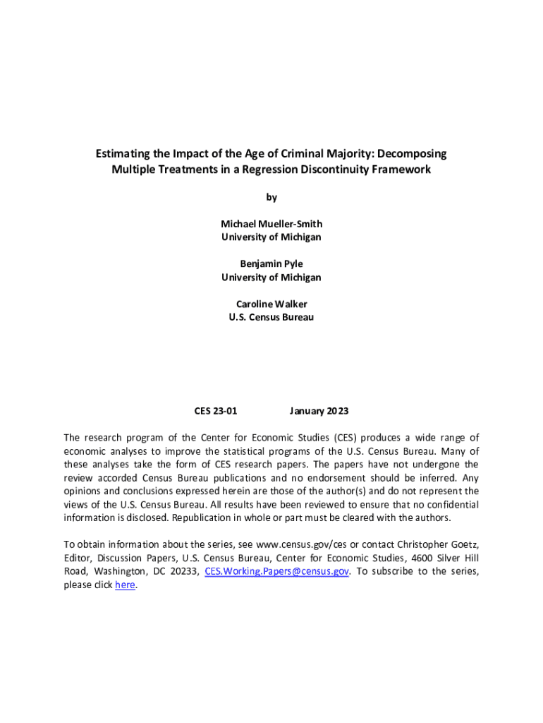 Estimating the Impact of the Age of Criminal Majority: Decomposing Multiple Treatments in a Regression Discontinuity Framework by Michael Mueller Smith University of Michigan Benjamin Pyle University