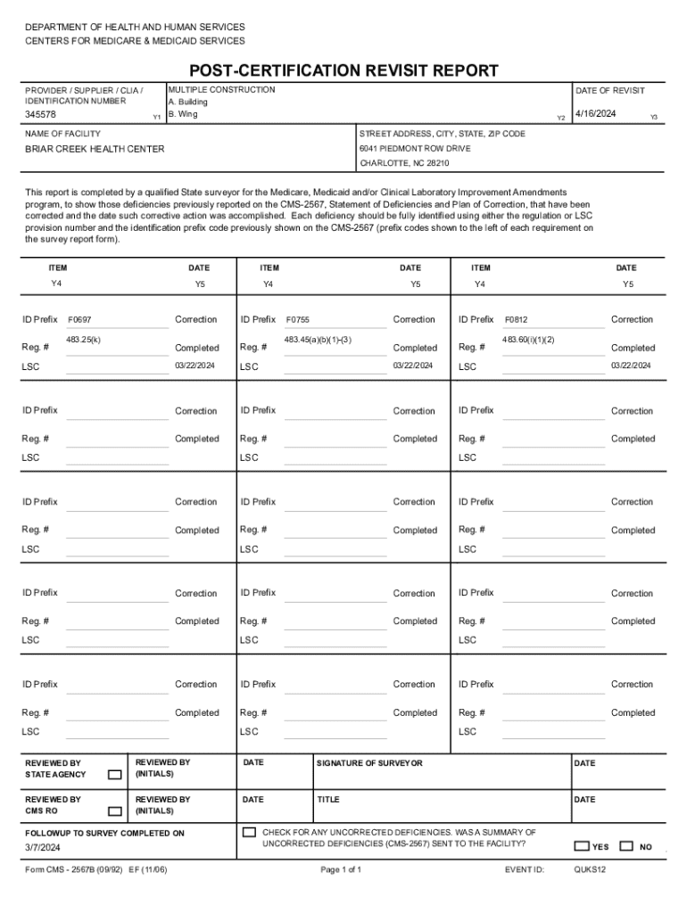 CENTERS FOR MEDICARE & MEDICAID SERVICESPOSTCERTIFICATION REVISIT REPORT