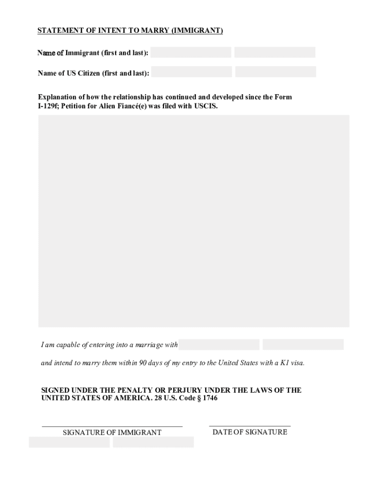 STATEMENT OF INTENT TO MARRY (IMMIGRANT)