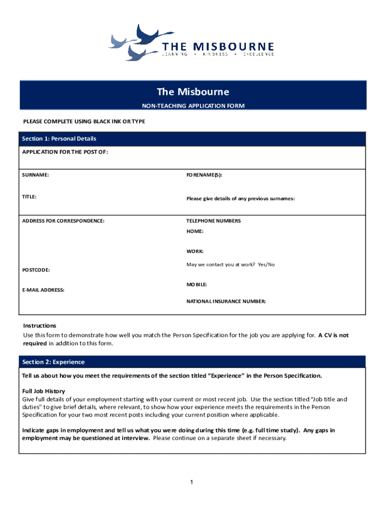 Get the free The Misbourne Support Staff Application Doc Template