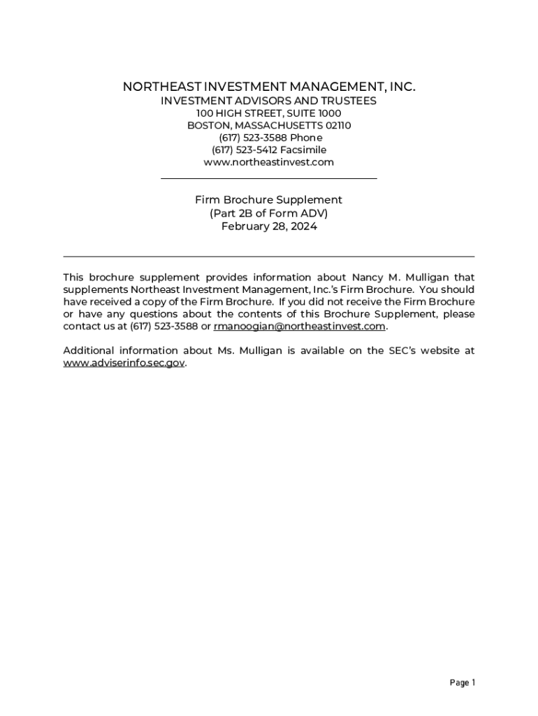 NORTHEAST INVESTMENT MANAGEMENT, INC.