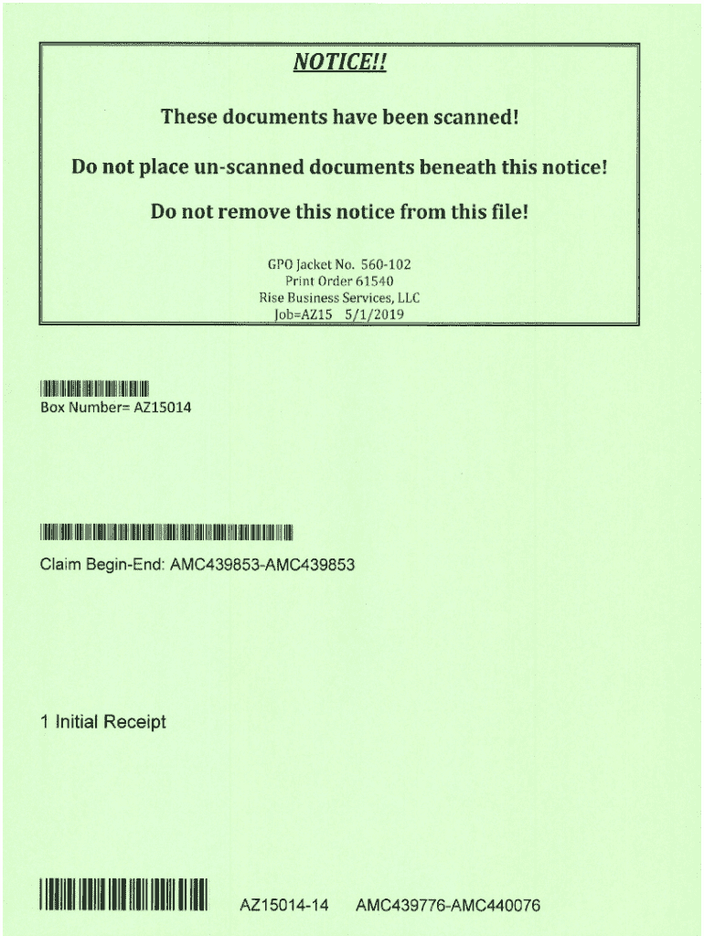 7....,1.1.MIN\".INOTICE!! These documents have been scanned!Do not place unscanned documents beneath this notice! Do not remove this notice from this file! GPO jacket No. 560102 Print Order 61540