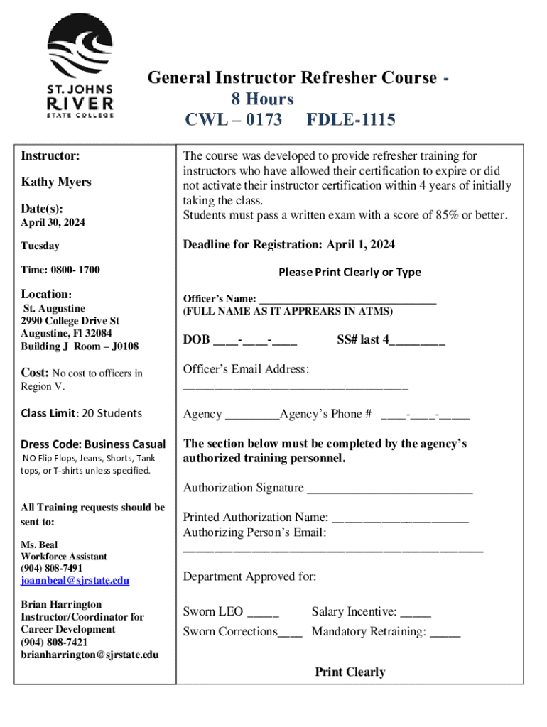 Get the free SJR State - April 2024 - General Instructor Refresher Course