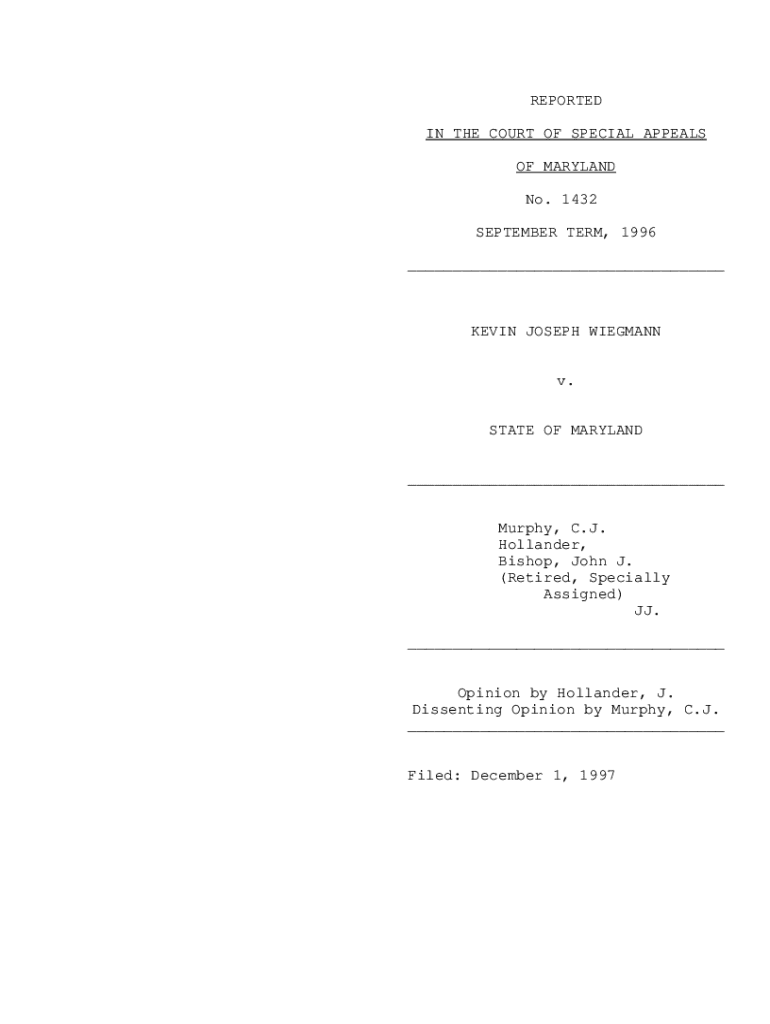 REPORTED IN THE COURT OF SPECIAL APPEALS OF MARYLAND No. 1432 SEPTEMBER TERM, 1996 ___KEVIN JOSEPH WIEGMANN v. STATE OF MARYLAND ___ Murphy, C.J. Hollander, Bishop, John J. (Retired, Specially Assigned)