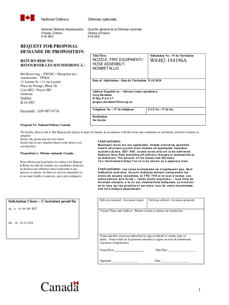 National DefenceDfense nationaleNational Defence Headquarters Ottawa, Ontario K1A 0K2Quartier gnral de la Dfense nationale Ottawa (Ontario) K1A 0K2REQUEST FOR PROPOSAL DEMANDE DE PROPOSITION RETURN