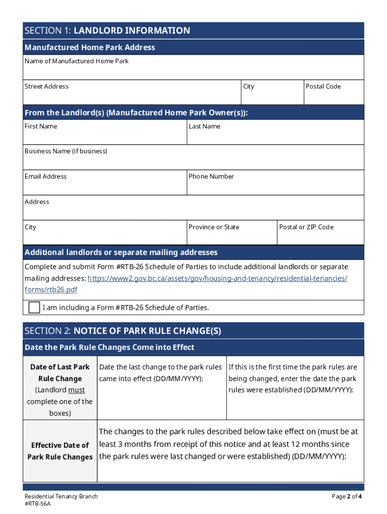 Get the free Notice of Manufactured Home Park Rule Change - Gov.bc.ca