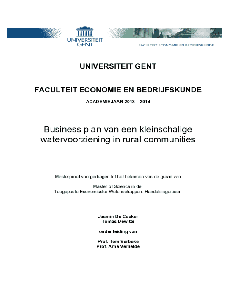 UNIVERSITEIT GENT FACULTEIT ECONOMIE EN BEDRIJFSKUNDE ACADEMIEJAAR 2013 2014Business plan van een kleinschalige watervoorziening in rural communitiesMasterproef voorgedragen tot het bekomen van de