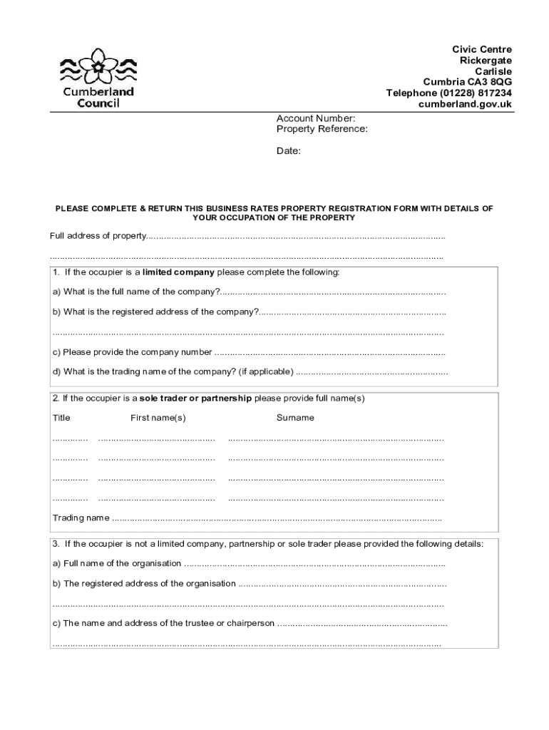 Date:PLEASE COMPLETE & RETURN THIS BUSINESS RATES PROPERTY REGISTRATION