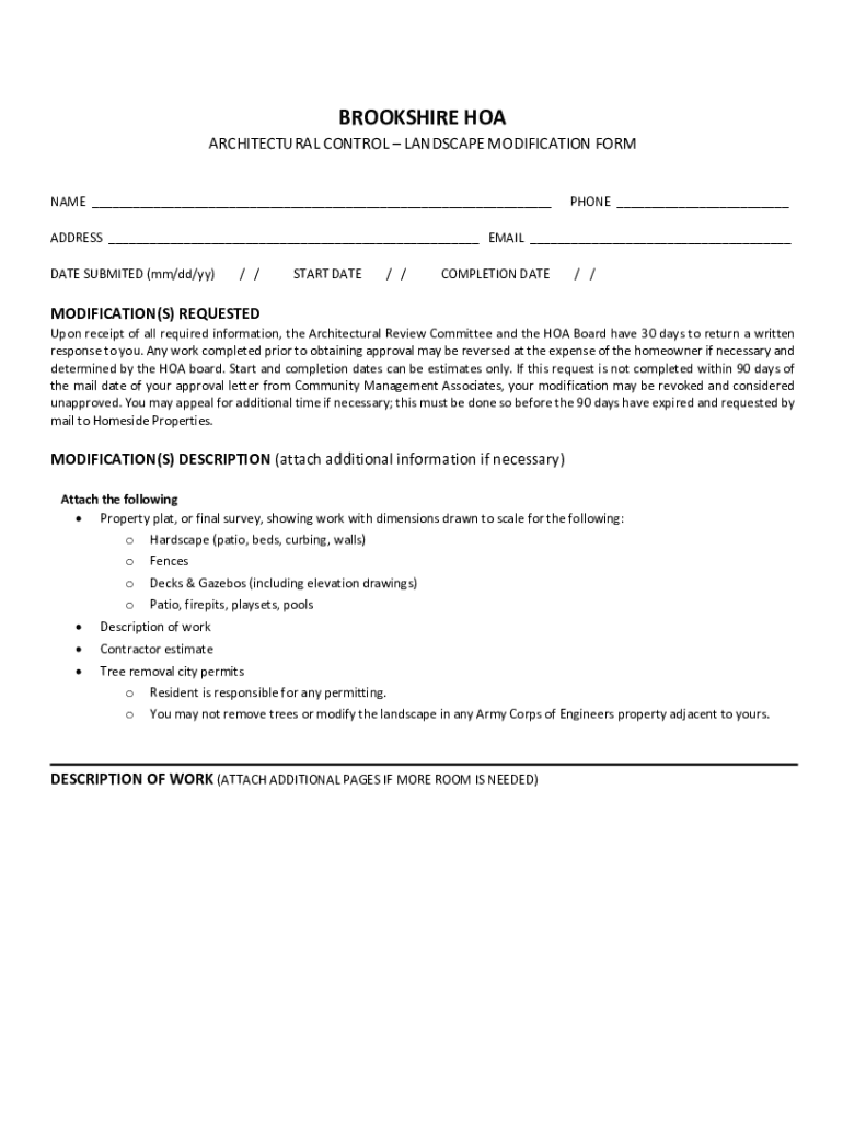 ARCHITECTURAL CONTROL LANDSCAPE MODIFICATION FORM