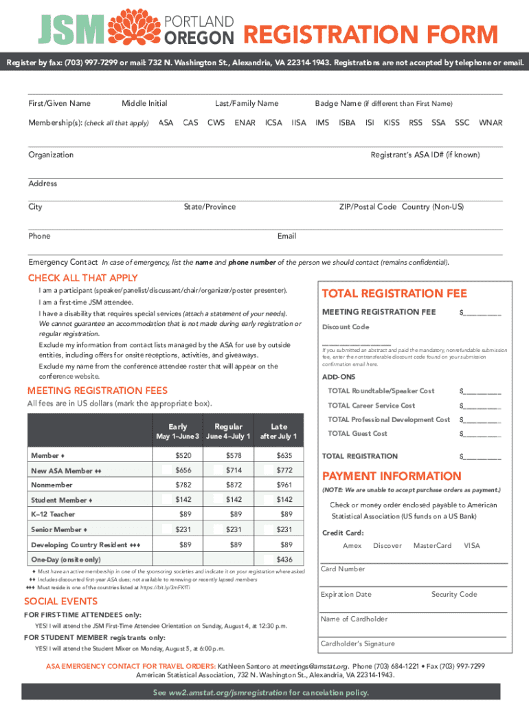 PORTLANDOREGONREGISTRATION Preregister by fax: (703) 9977299 or mail: 732 N. Washington St., Alexandria, VA 223141943. Registrations are not accepted by telephone or email. First/Given NameMiddle