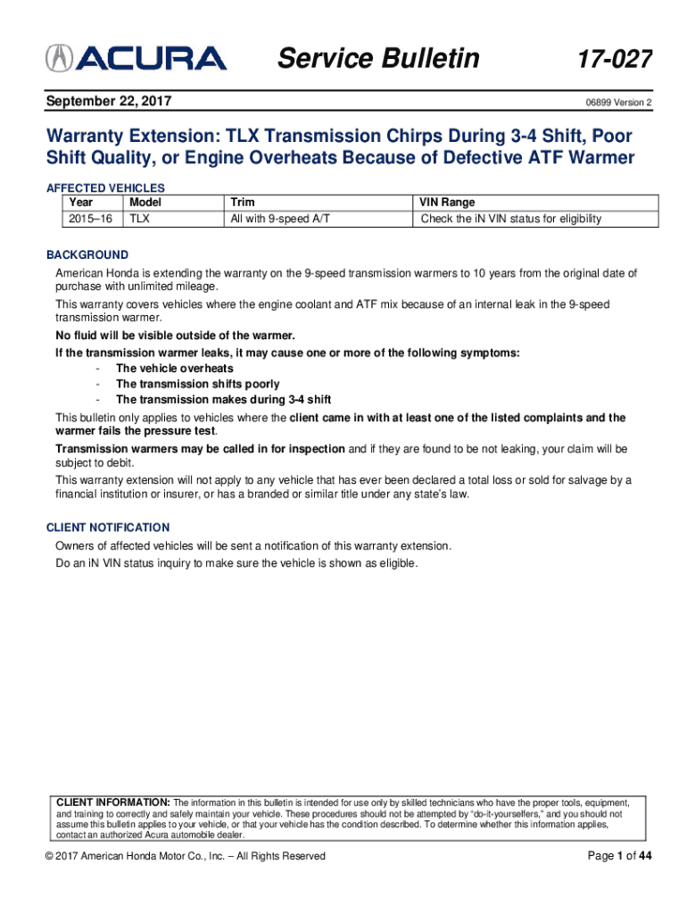 06899 Version 2Warranty Extension: TAX Transmission Chirps During 34 Shift, Poor