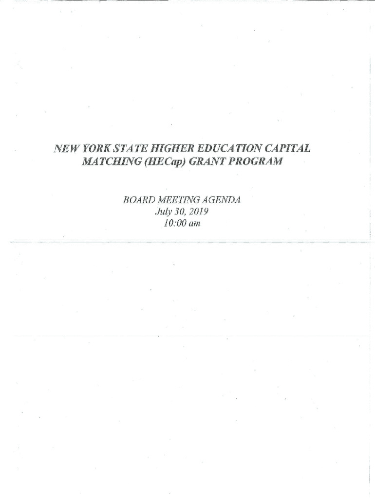 July 30, 201910:00 anew YORK STATE HIGHER EDUCATION CAPITAL