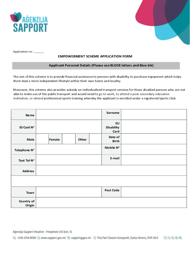Application no.: ___EMPOWERMENT SCHEME APPLICATION FORM