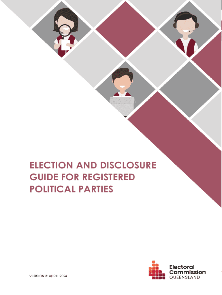 ELECTION AND DISCLOSURE GUIDE FOR REGISTERED POLITICAL PARTIESVERSION 3: APRIL 2024 Electoral Commission of Queensland Guide for Registered Political Parties and Associated Entities for State Elections