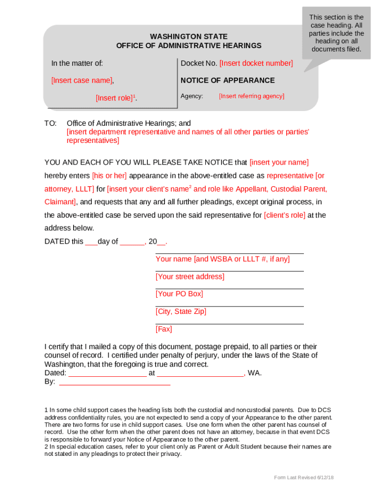 How to fill out NOA Generic Template
