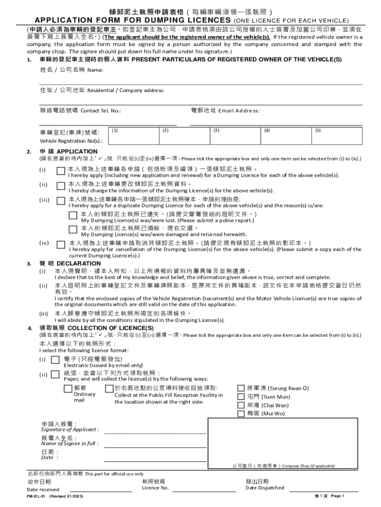 Get the free Application Form for Dumping Licences