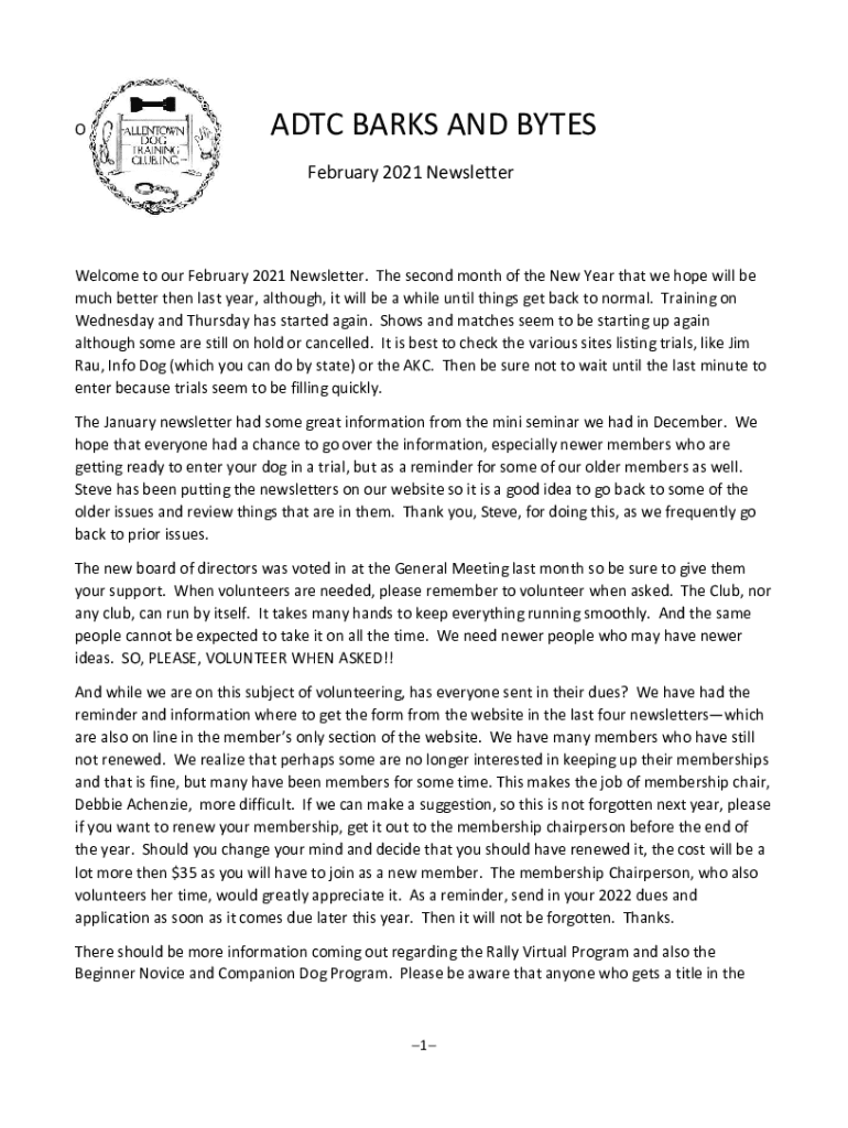 February 2021 NewsletterWelcome to our February 2021 Newsletter. The second month of the New Year that we hope will be