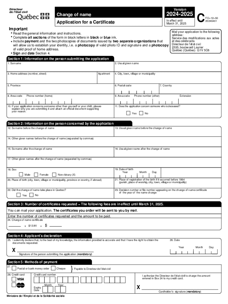 . Change of name20242025Application for a Certificate In effect until