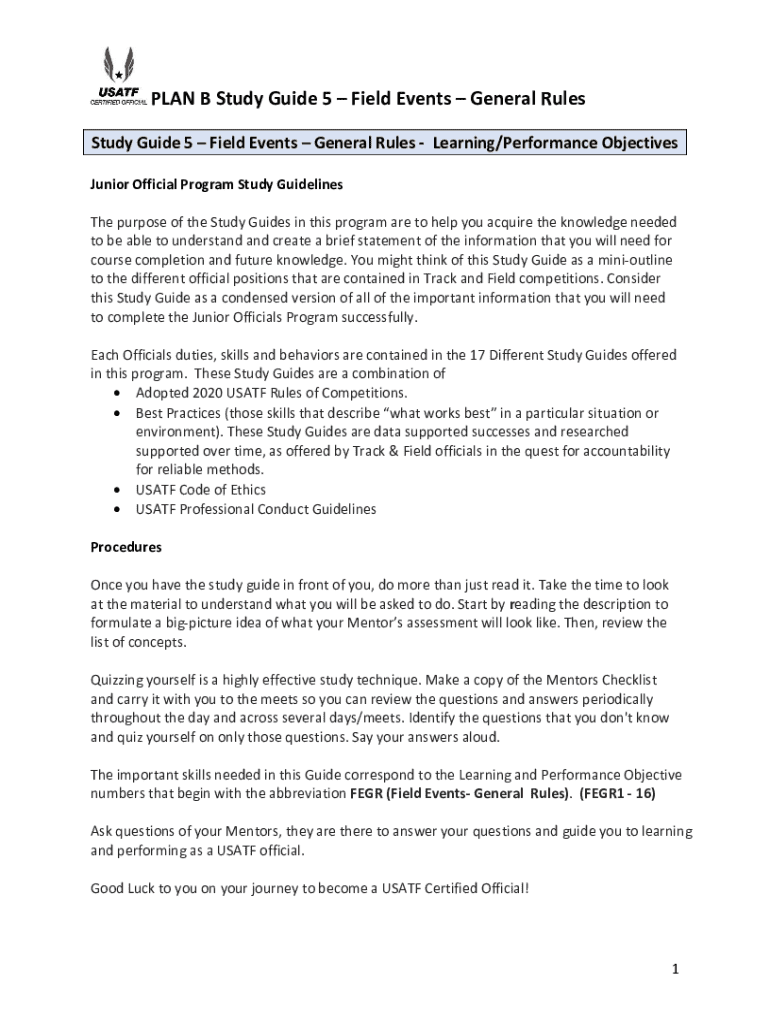PLAN B Study Guide 5 Field Events General Rules Study Guide 5 Field Events General Rules Learning/Performance Objectives Junior Official Program Study Guidelines The purpose of the Study Guides in