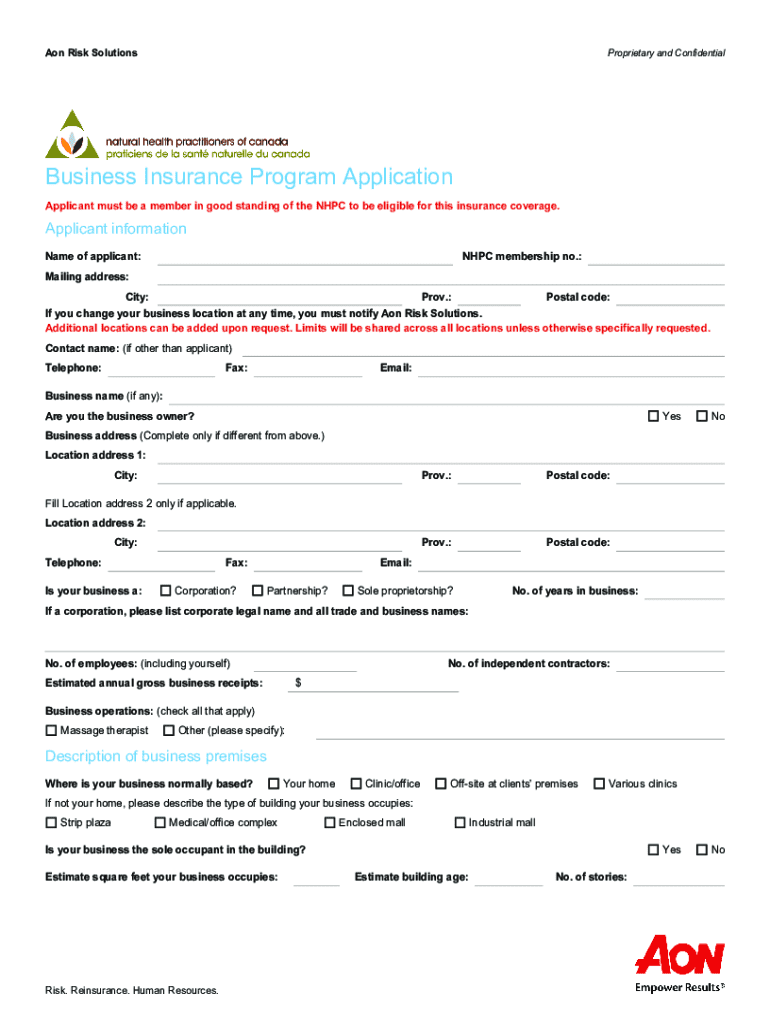 Get the free Business Insurance Program Application - Aon