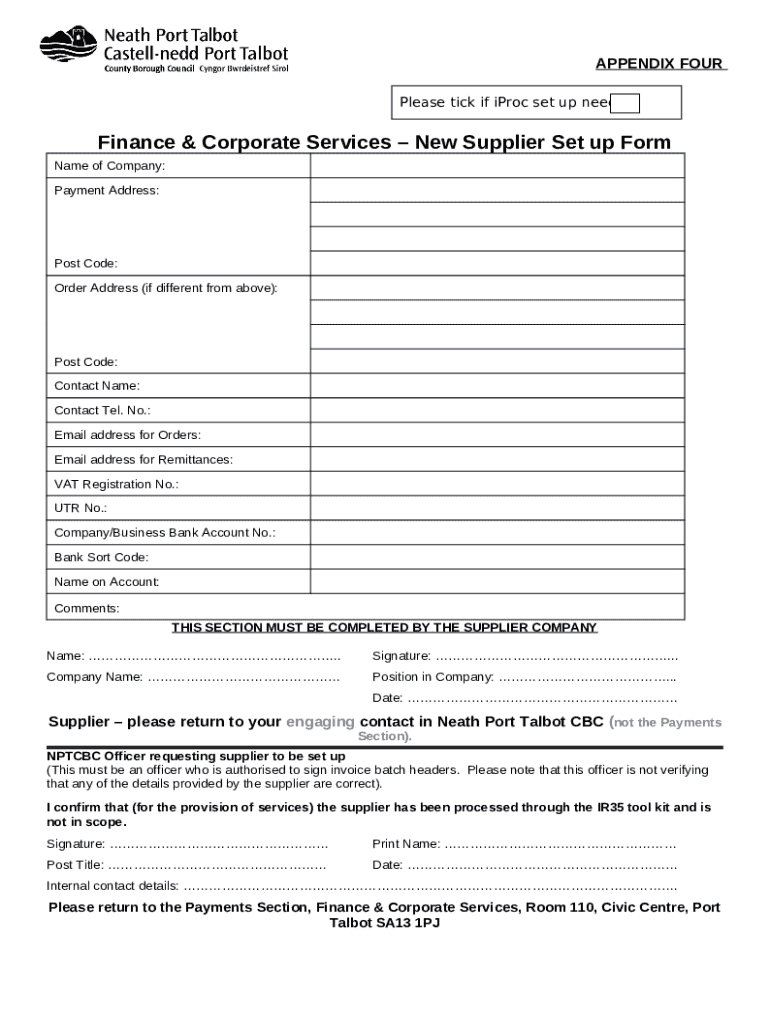 Instructions for the Finance & Corporate Services New Supplier Set up form