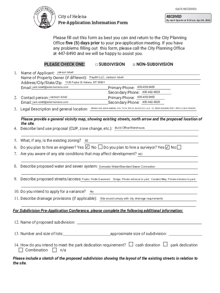 Reapplication Information Form April Sparks at 9:34 am, Apr 04, 2024Please fill out this form as best you can and return to the City Planning