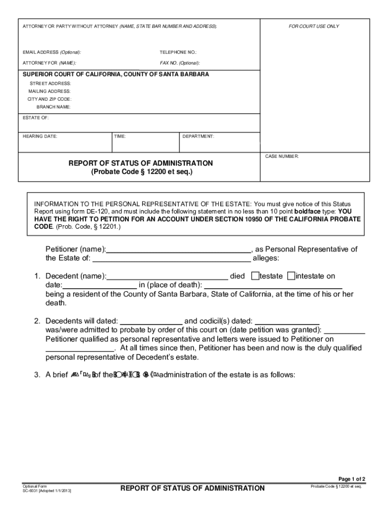 Choose a location ATTORNEY OR PARTY WITHOUT ATTORNEY (NAME, STATE BAR NUMBER AND ADDRESS):EMAIL ADDRESS (Optional):TELEPHONE NO.:ATTORNEY FOR (NAME):FAX NO. (Optional):FOR COURT USE ONLYSUPERIOR COURT