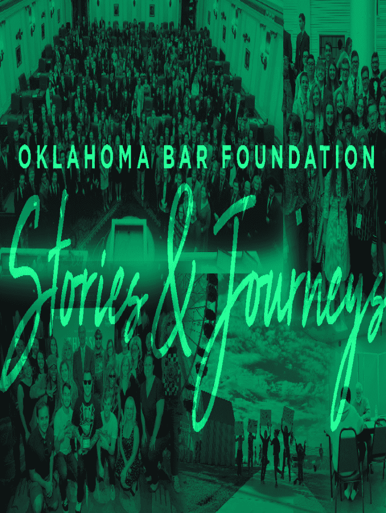Stories. And journeys. Thats what drives the Oklahoma Bar Foundation. In the bright forefront are stories of lives saved and transformed by the support of the Foundation. In the dark backdrop are