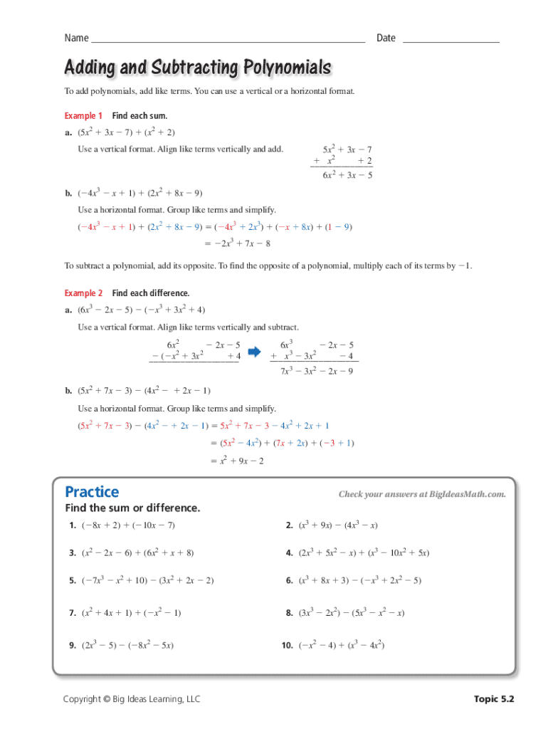 Edit your adding and subtracting polynomialscollege form online