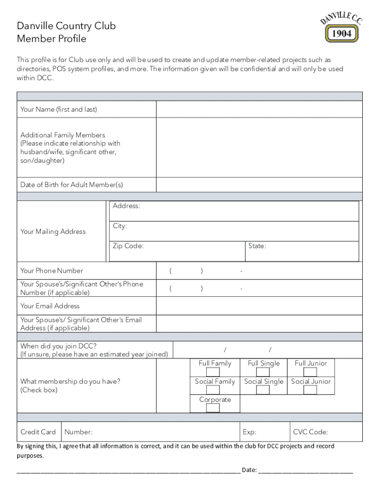 Danville Country Club Member Profile This profile is for Club use only and will be used to create and update memberrelated projects such as directories, POS system profiles, and more. The information
