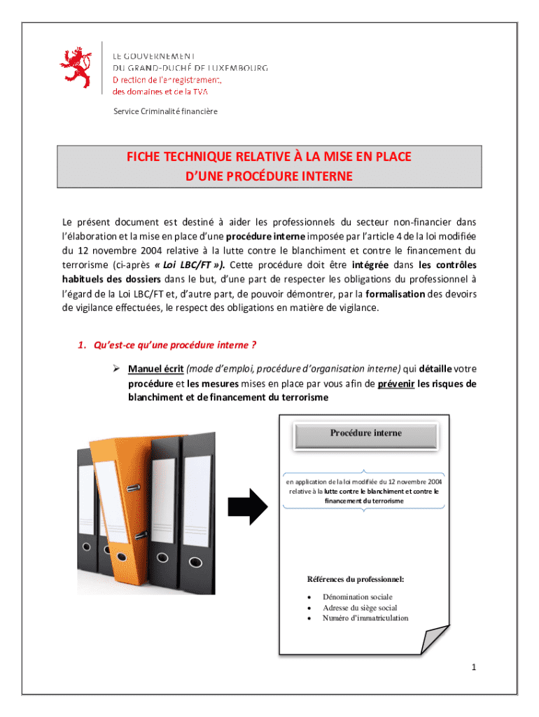 Service Criminality financireFICHE TECHNIQUE RELATIVE LA MILE EN PLACE
