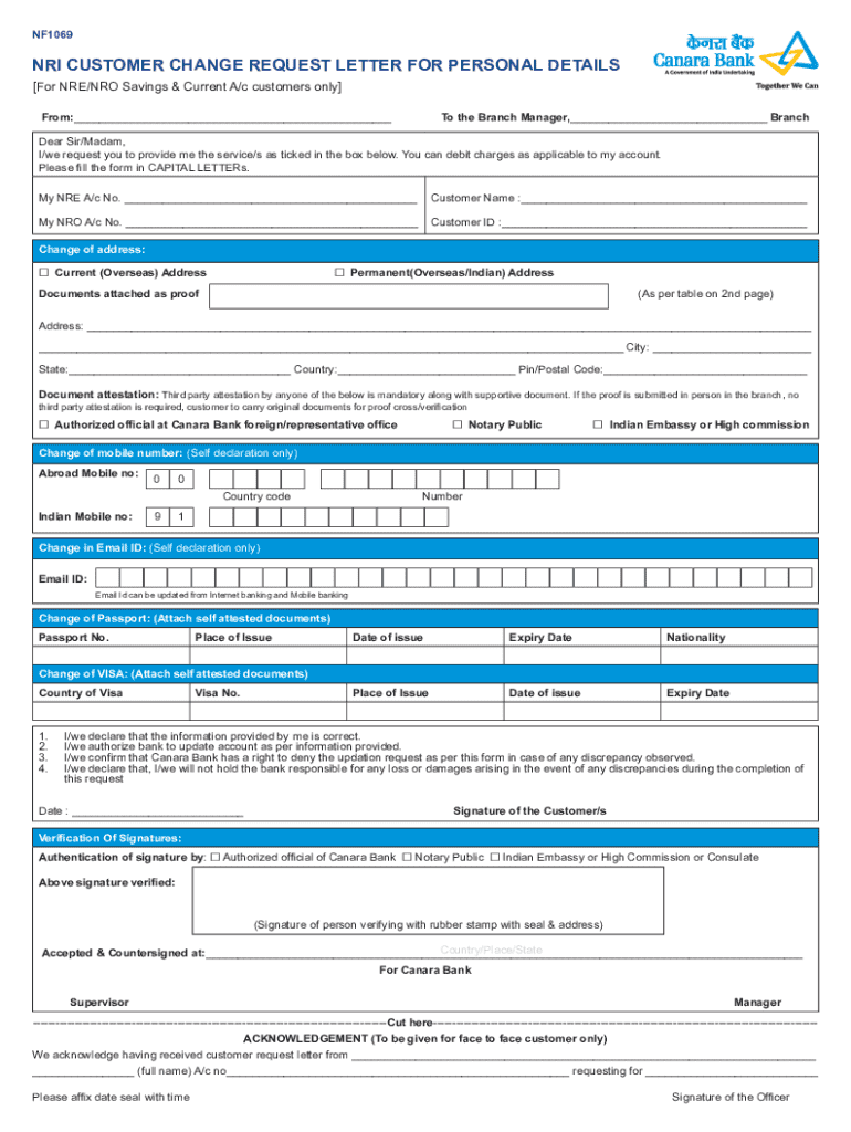 NF1069NRI CUSTOMER CHANGE REQUEST LETTER FOR PERSONAL DETAILS